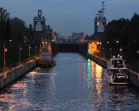 "Волго-Дон 5077" в шлюзе №7 Канала имени Москвы в Москве. 26 октября 2015 года