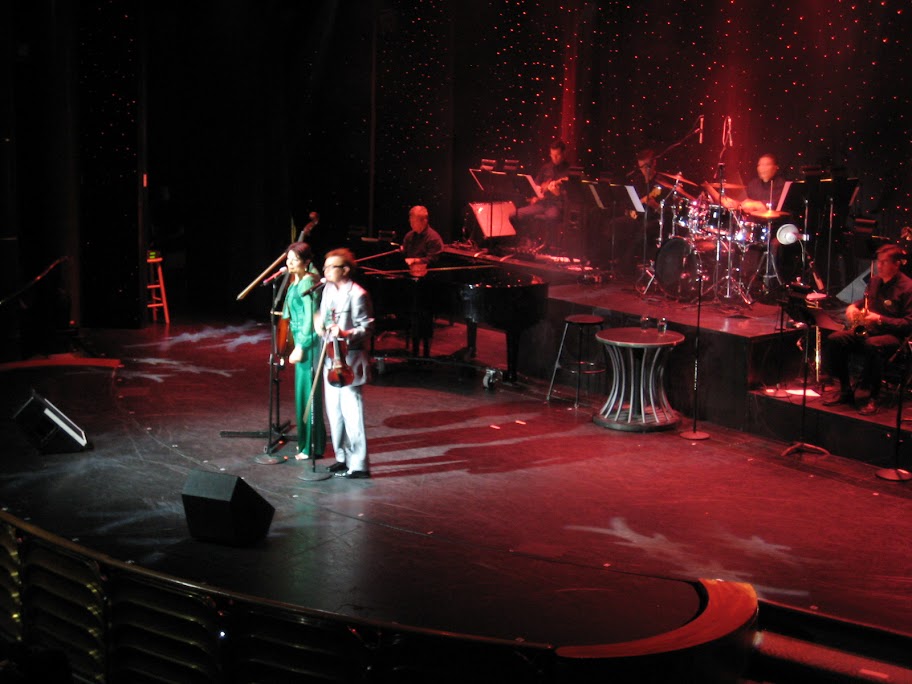 Вчера вечером ходил на шоу. В предыдущих круизах как-то не получалось мне шоу посмотреть нормально: всё на английском, да ещё и со "словечками", после ситного ужина, после лёгкой выпивки, театр в носу корабля (там качает сильней), приглушённый свет, мягкое кресло - идеальные условия для крепкого сна. Тут я на ужин решил пойти потом, не пил, да и шоу было интерактивным: два представителя оригинального жанра делали пародии на известные музыкальные произведения, постоянно общаясь с залом. Вот тут сильно было заметно, что австралов на корабле не просто много, а почти все. Музыканты зрителям речёвку как в пионер-лагере (наверное все в лагерях побывали):