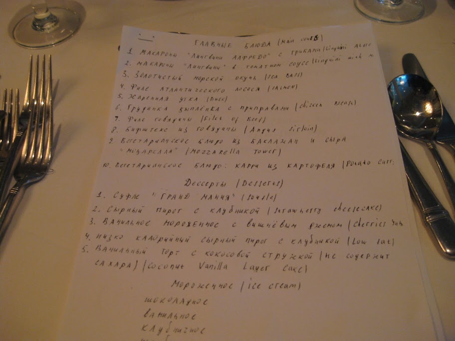 Да мы уже итак привыкли, русский перевод нужен был только моему попутчику. А мне так наоборот, лучше без перевода, чтобы поупражняться и попривыкать, ведь в других местах не будет русского перевода. Да и тем более перевод "Lobster biscue" как "Биск из лобстеров" - легче от этого не становится, как мне кажется.